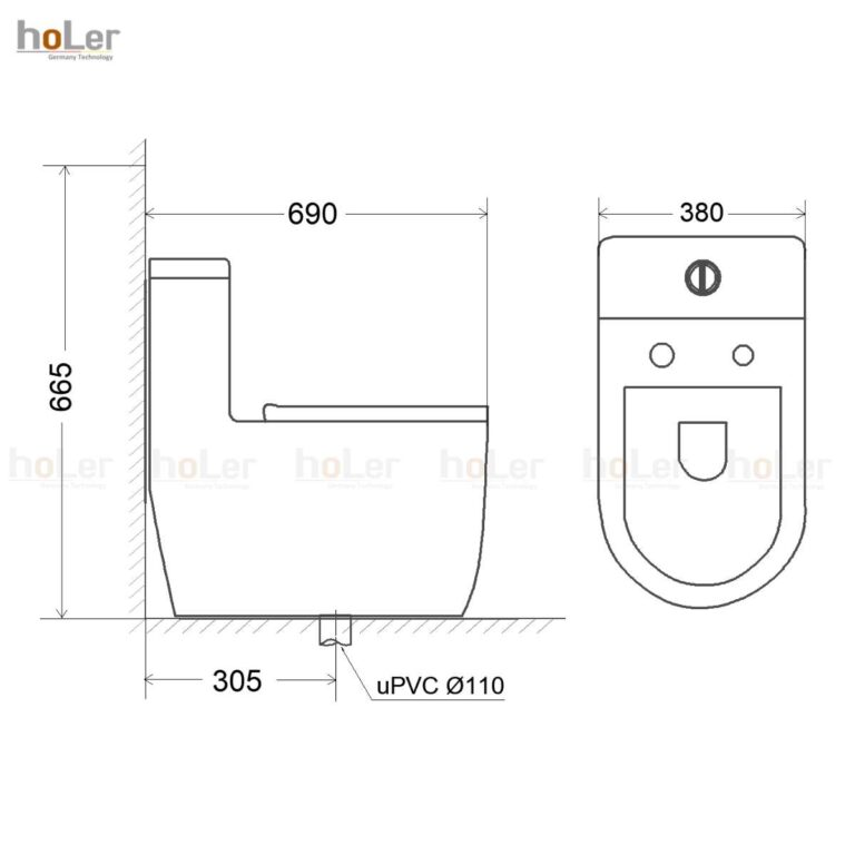 Hình ảnh kích thước sản phẩm Bồn Cầu 1 Khối Holer HLBC279