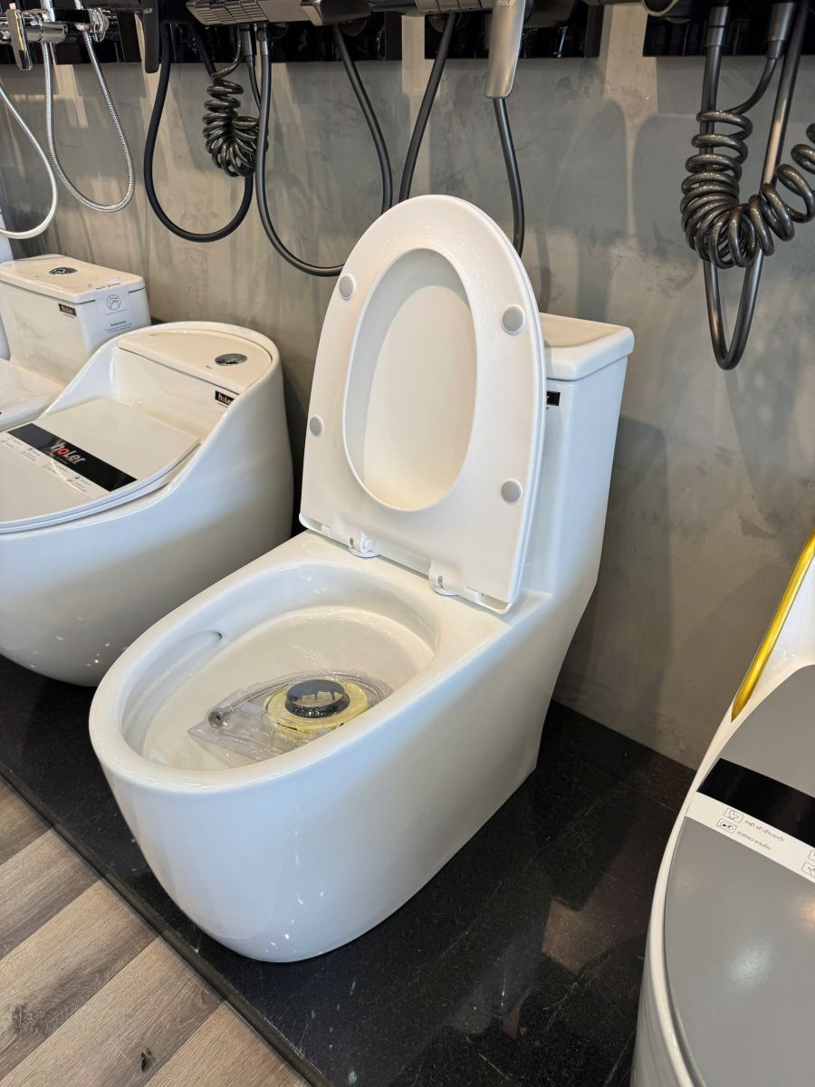 Bồn Cầu Trứng 1 Khối Màu Trắng Nắp Đen Holer HLBC205