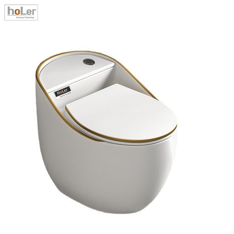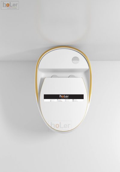 Bồn Cầu Trứng Trắng 1 Khối viền Vàng Holer HLBC224