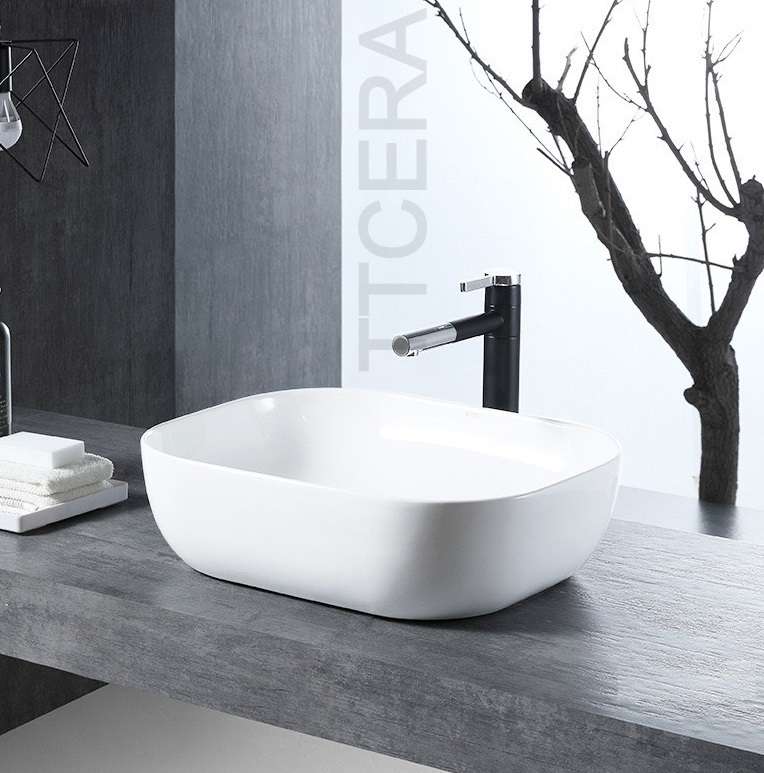 Chậu Lavabo Vuông Trắng Đặt Bàn TTCERA LB50