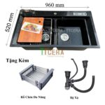 Chậu Rửa Chén Đá Đen Nhân Tạo Siêu Mịn Vắt Dao Hộc Rác TTCERA CRĐĐ10050DR