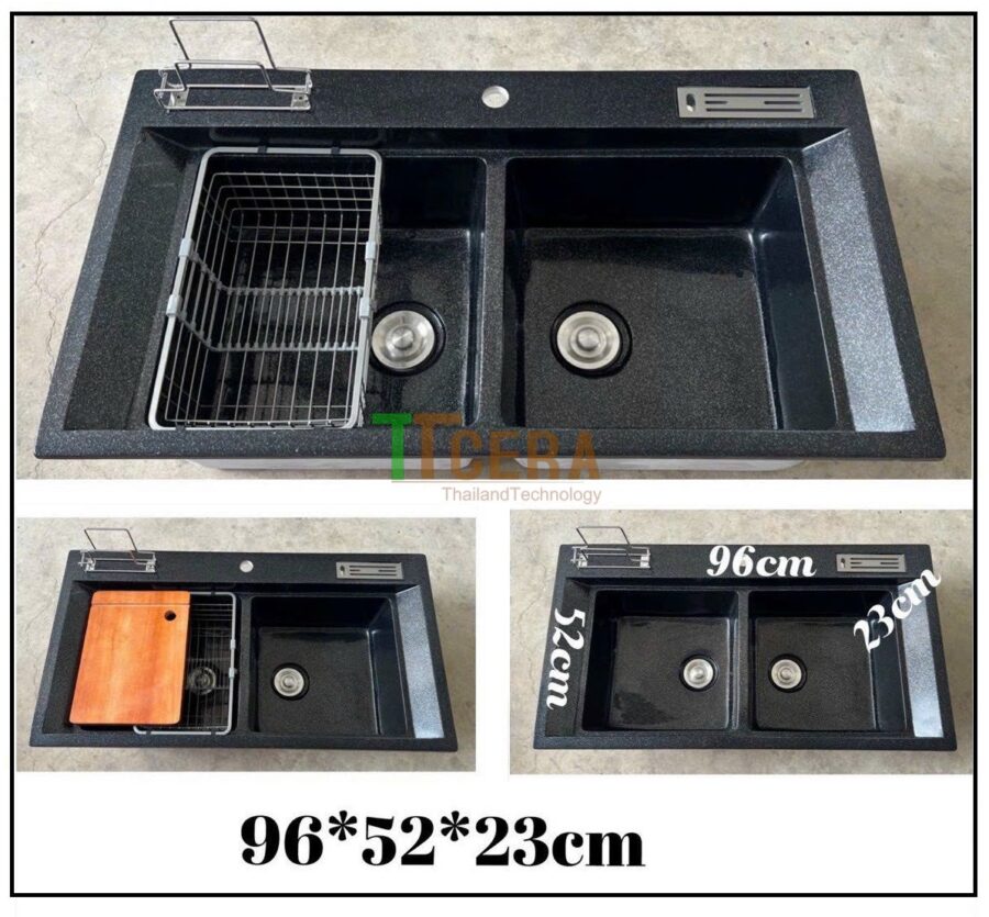 Chậu Rửa Chén 2 Hộc Đá Đen Nhân Tạo Siêu Mịn TTCERA CRĐT9652DT