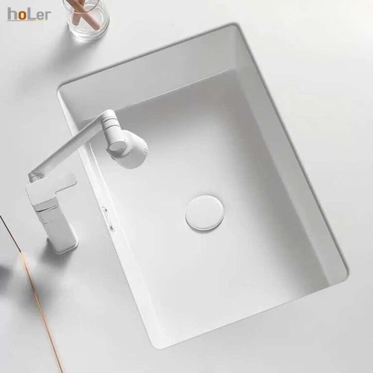 - Sản phẩm chậu lavabo hoLer sở hữu thiết kế dáng hiện đâị với lòng chậu sâu, rộng và tinh tế dễ dàng lắp đặt âm và phù hợp với mọi không gian, đặc biệt là không gian phòng tắm rộng, sang trọng.