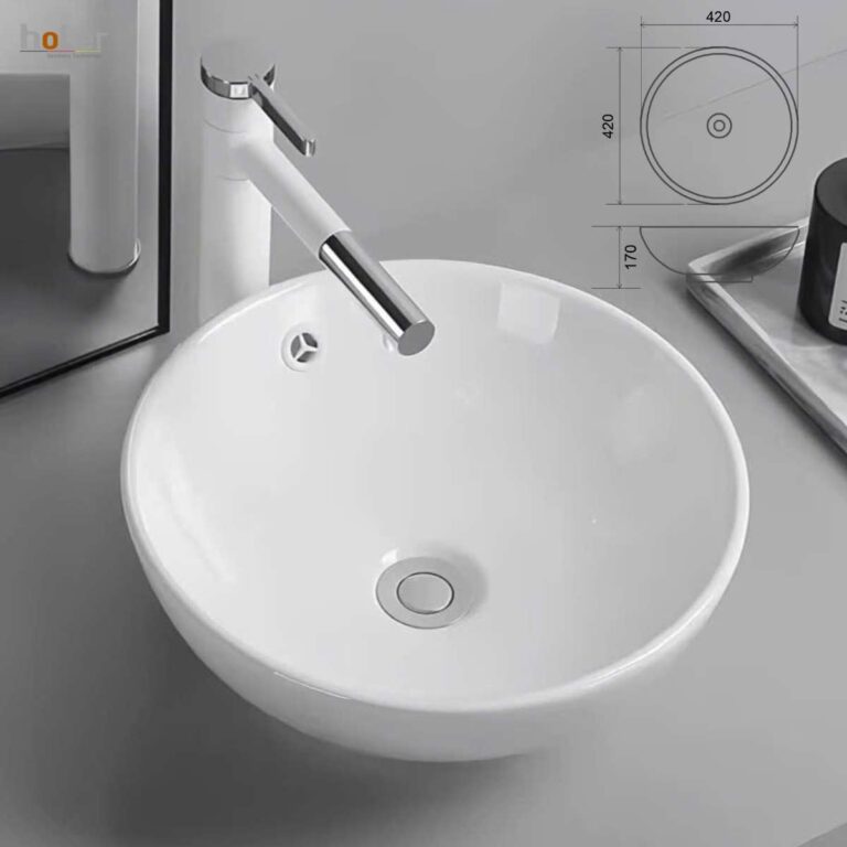 - Sản phẩm chậu lavabo hoLer sở hữu thiết kế dáng hiện đâị với lòng chậu sâu, rộng và tinh tế dễ dàng lắp đặt và phù hợp với mọi không gian, đặc biệt là không gian phòng tắm rộng, sang trọng.