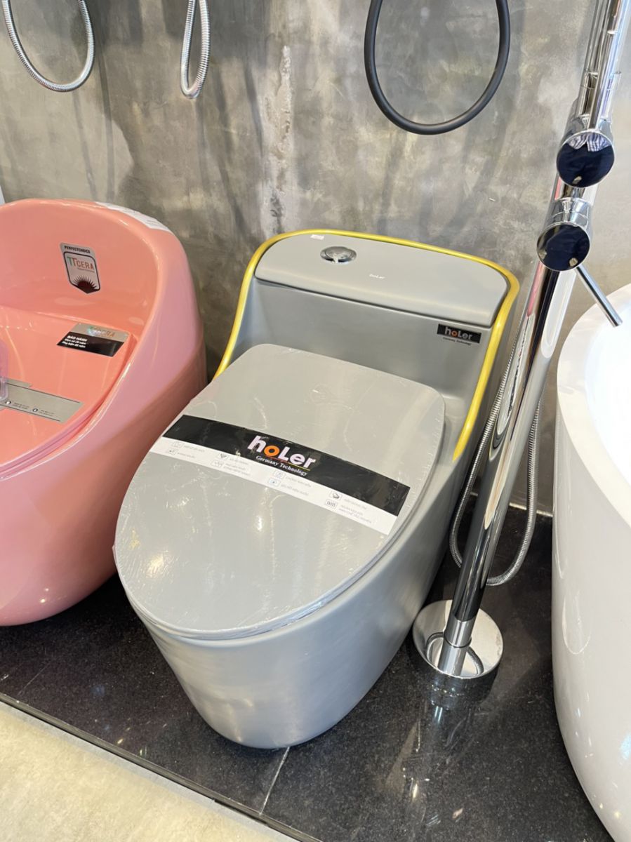1. Bồn Cầu Trứng 1 Khối Màu Xám Holer HLBC204