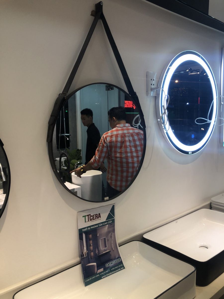 - Gương Tròn Dây Da Đen Nhà Tắm GL07