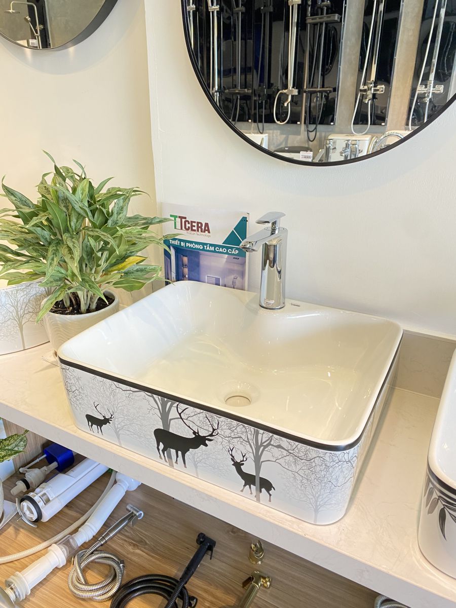 - Chậu lavabo đặt bàn vuông hoa văn nai rừng LB21