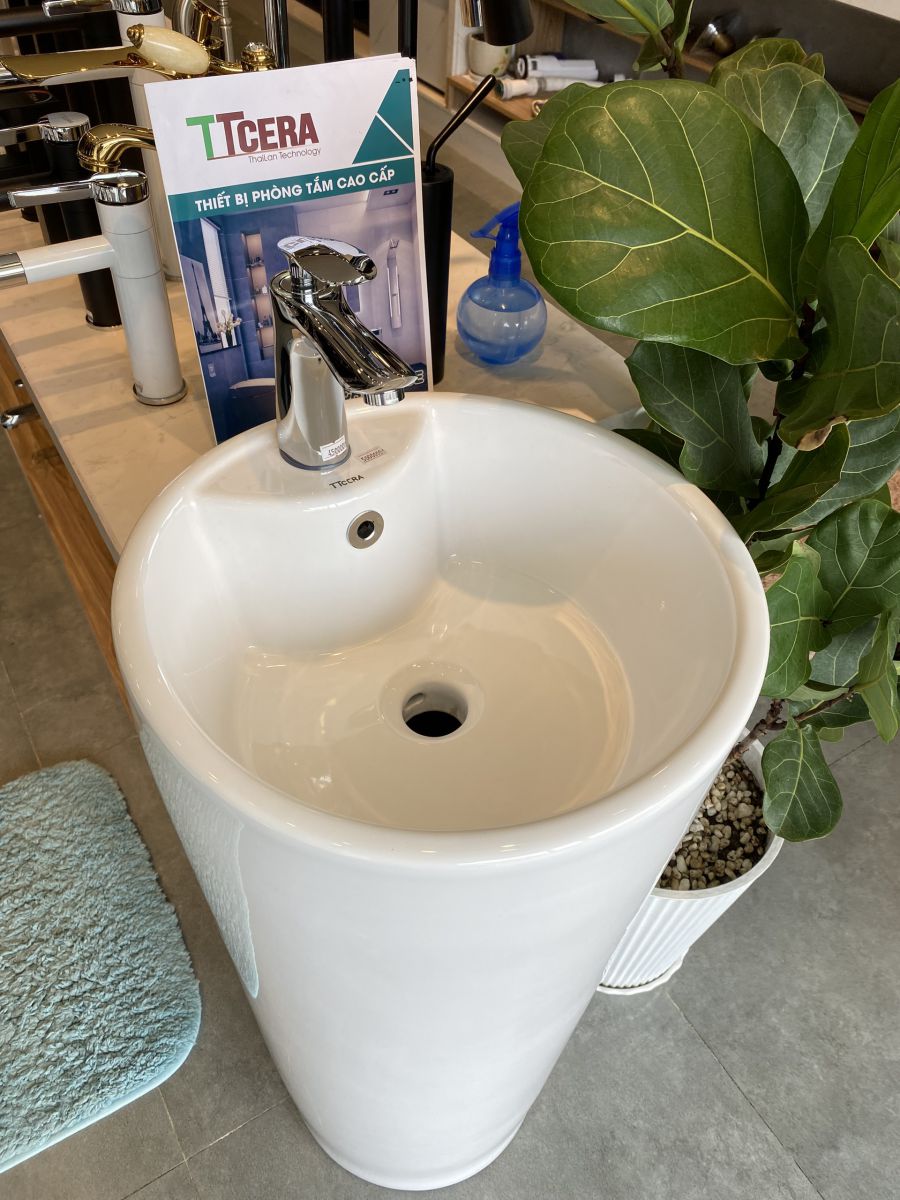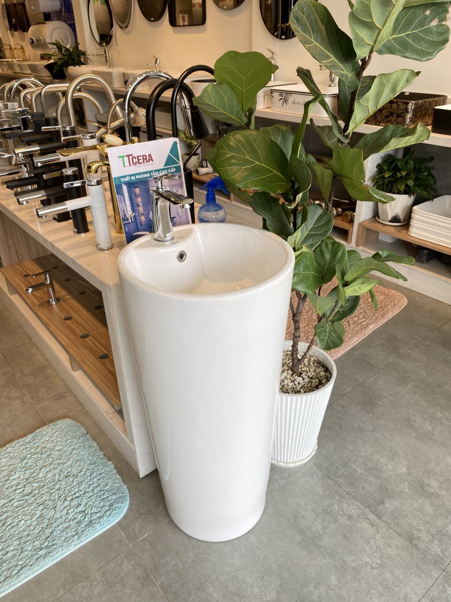 Lavabo Sứ Trụ Đứng Liền Khối Tròn Trắng TTCERA LB115