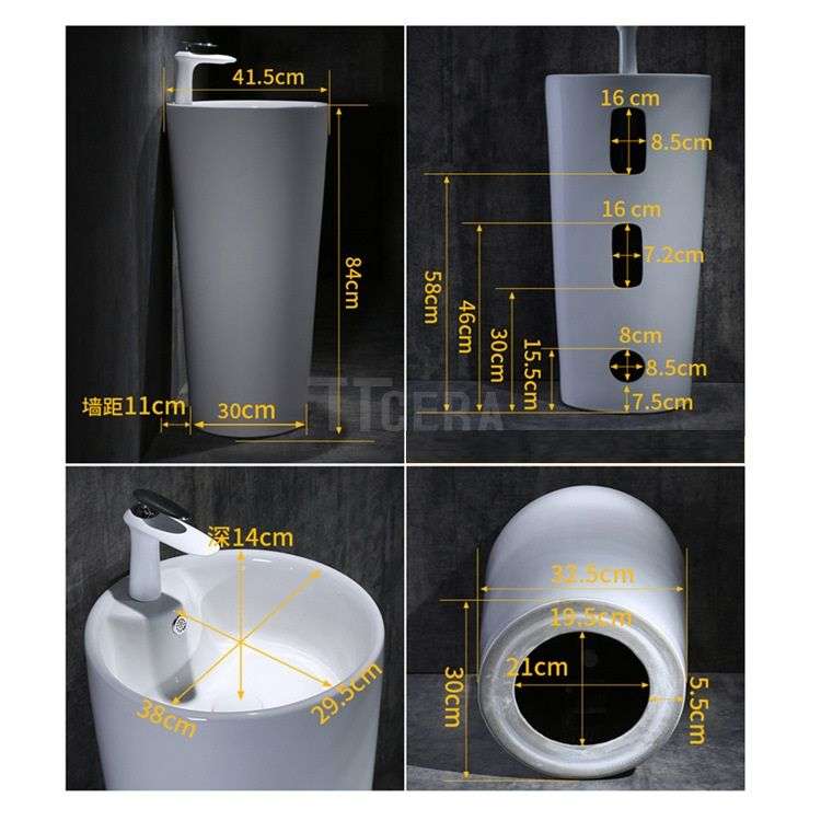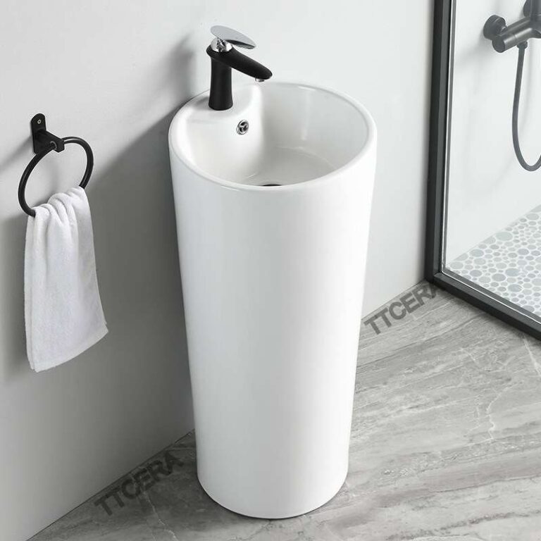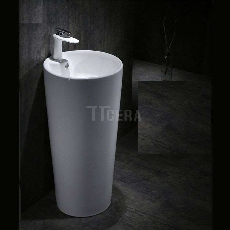 Lavabo Sứ Trụ Đứng Liền Khối Tròn Trắng TTCERA LB115