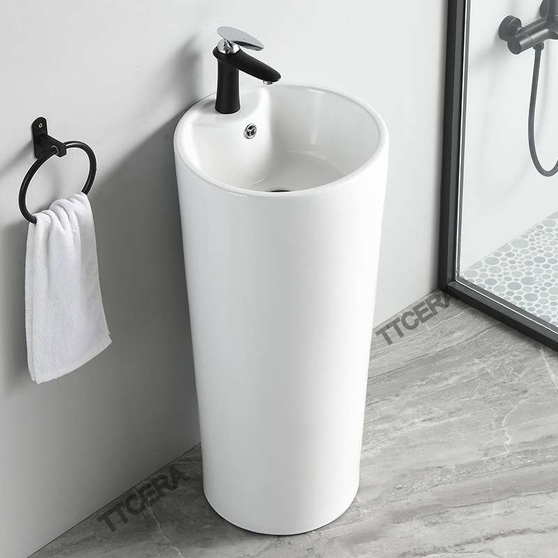 Lavabo Sứ Trụ Đứng Liền Khối Tròn Trắng TTCERA LBT01
