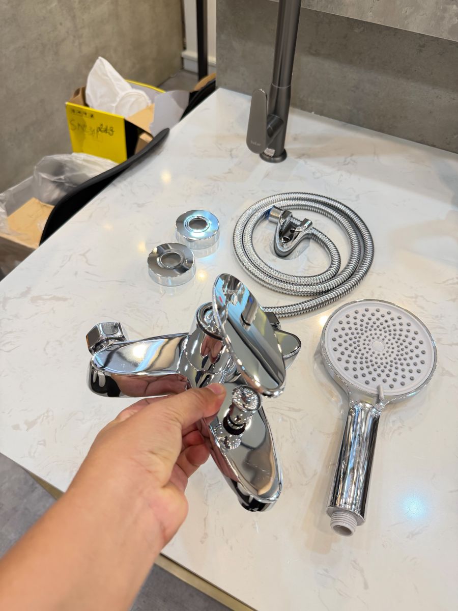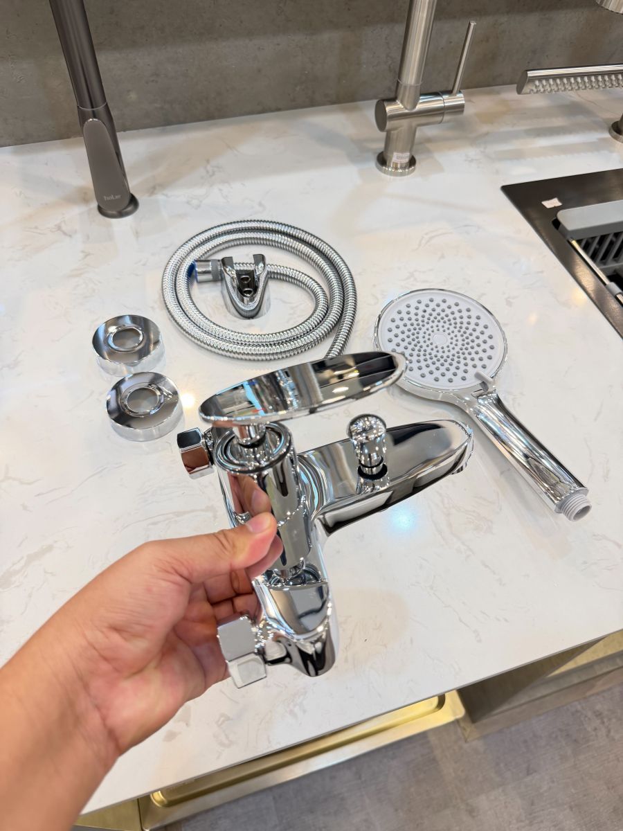 Chất liệu: Đồng nguyên chất mạ Crom sáng bóng. Bộ sản phẩm gồm: Củ sen nóng lạnh + Tay sen nhựa ABS mạ Crom có nút chỉnh chuyển chế độ nước+ phụ kiện đi kèm