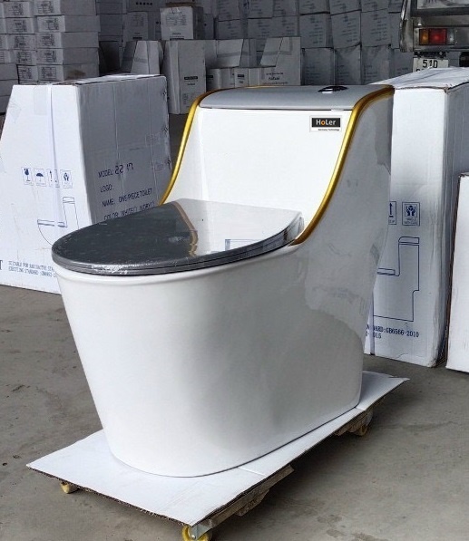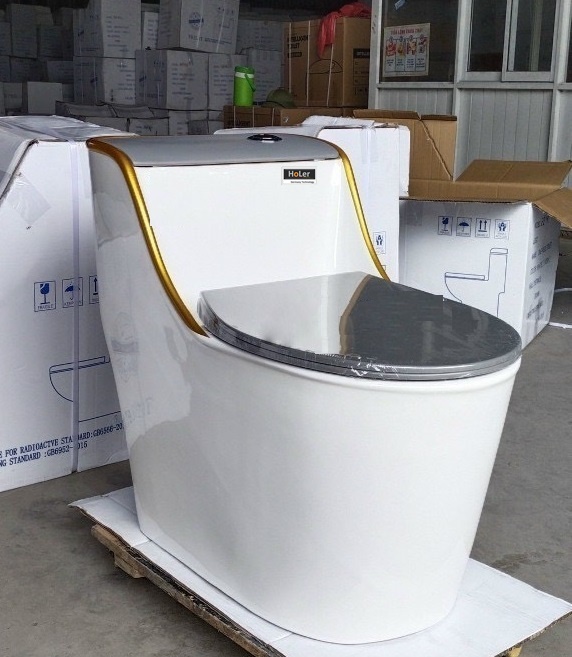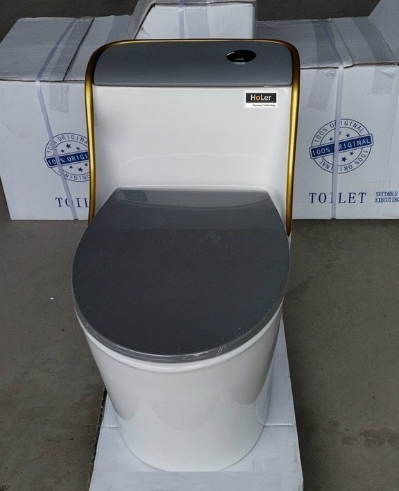 Bồn Cầu Trứng 1 Khối Màu Xám Viền Vàng Holer HLBC220