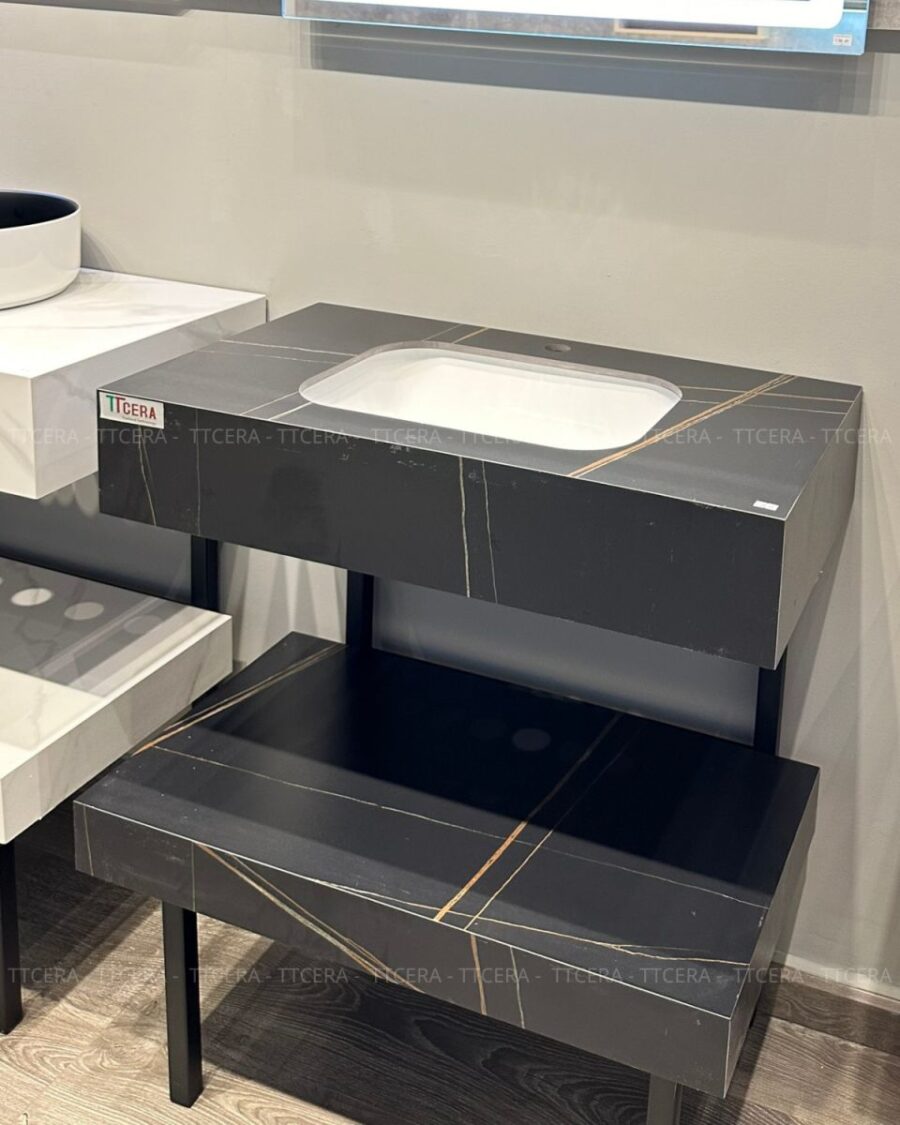 Trang chủ / Bàn đá lavabo / Bàn đá lavabo 2 tầng / Tủ Lavabo Bàn Đá Đen 2 Tầng Chống Trầy TLVBD-03