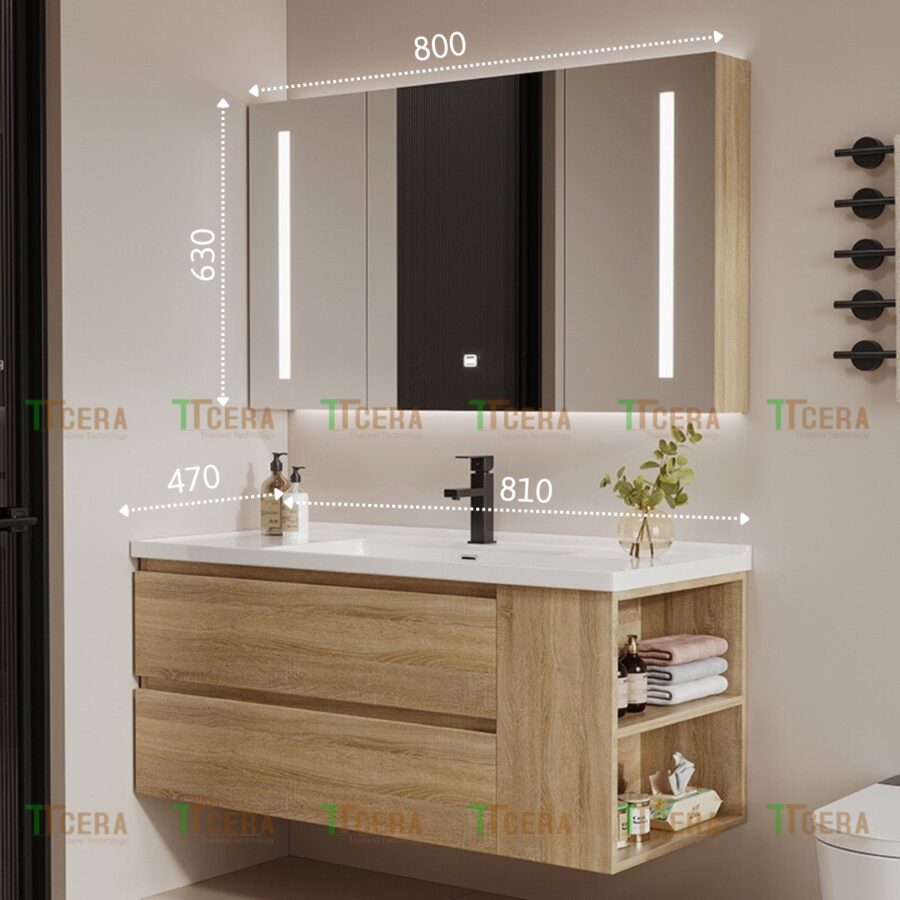 Tủ Lavabo Nhựa PVC Đặc Vân Gỗ TTCERA TLVB131-8047