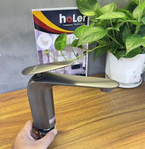 Vòi Lavabo Nóng Lạnh Đồng Sơn Tĩnh Điện Xám Holer HL-LB640