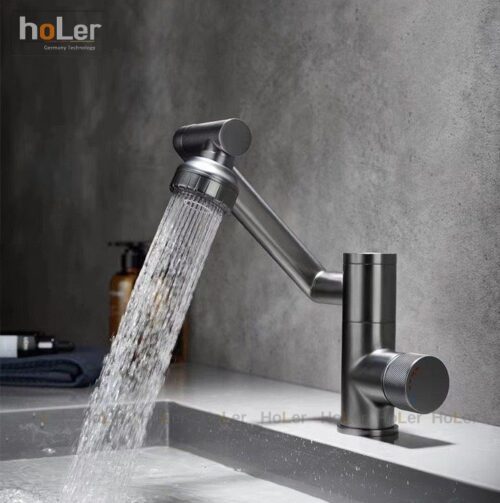 Vòi Lavabo Nóng Lạnh Inox 304 Xoay 720 Độ Holer HL-LB649 ( Màu Xám – Màu inox )