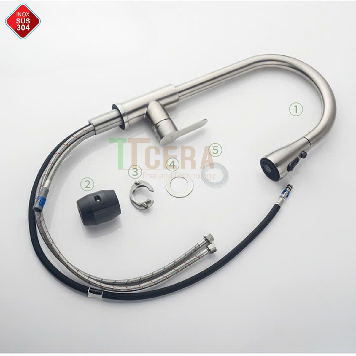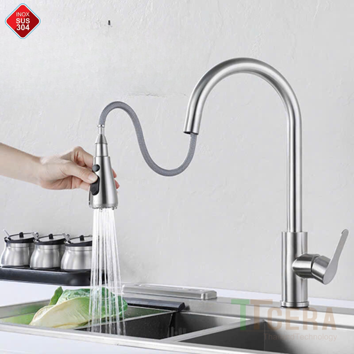 Vòi Rửa Chén Rút Dây Nóng Lạnh Inox 304 TTCERA CNL509
